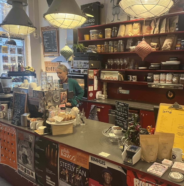 Even relaxen doe je in onze koffiecorner. Koffiespecials, hot drinks, cold drinks, organic, vers en net even anders. Lekkere trek? Onze tosti’s zijn favoriet in de Utrechtsestraat. Net als de zelfgemaakte taarten en cakejes. Concerto Koffie is een ontmoetingsplek voor muziekliefhebbers. Met wekelijks gratis live acts, signeersessies en presentaties. Ook zonder deze events kan je je prima vermaken; met een ruim dvd-aanbod, kaarten, gratis kranten, wifi, een uitgebreide selectie boeken en graphic novels, terwijl wij lekkere plaatjes voor je draaien.